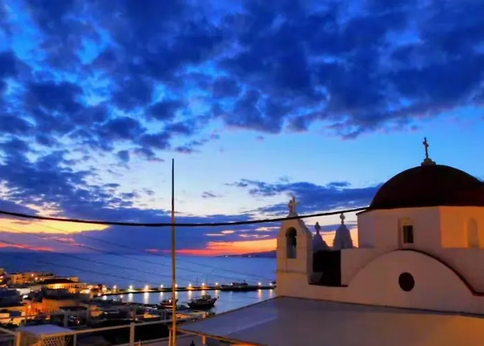 海の景色を見渡せるテラスを提供するMykonos Town Μooi Katrinsヴィラは、マトイヤンニ通りから歩いてわずか6分離れた場所にあります。